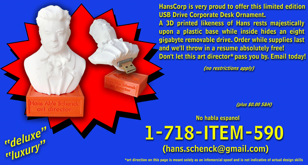 It's much more than just an 8gb USB drive. It's a 3D printed likeness of yours truly that looks handsome on a desk or mantle and it could be yours if you'd like one.